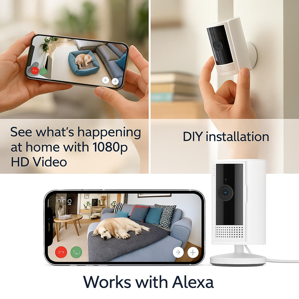Plug-In Pet Security Camera | 1080p HD, Two-Way Talk, Wifi, Privacy Cover, DIY | alternative to CCTV system | 30-day free trial of Ring Home.