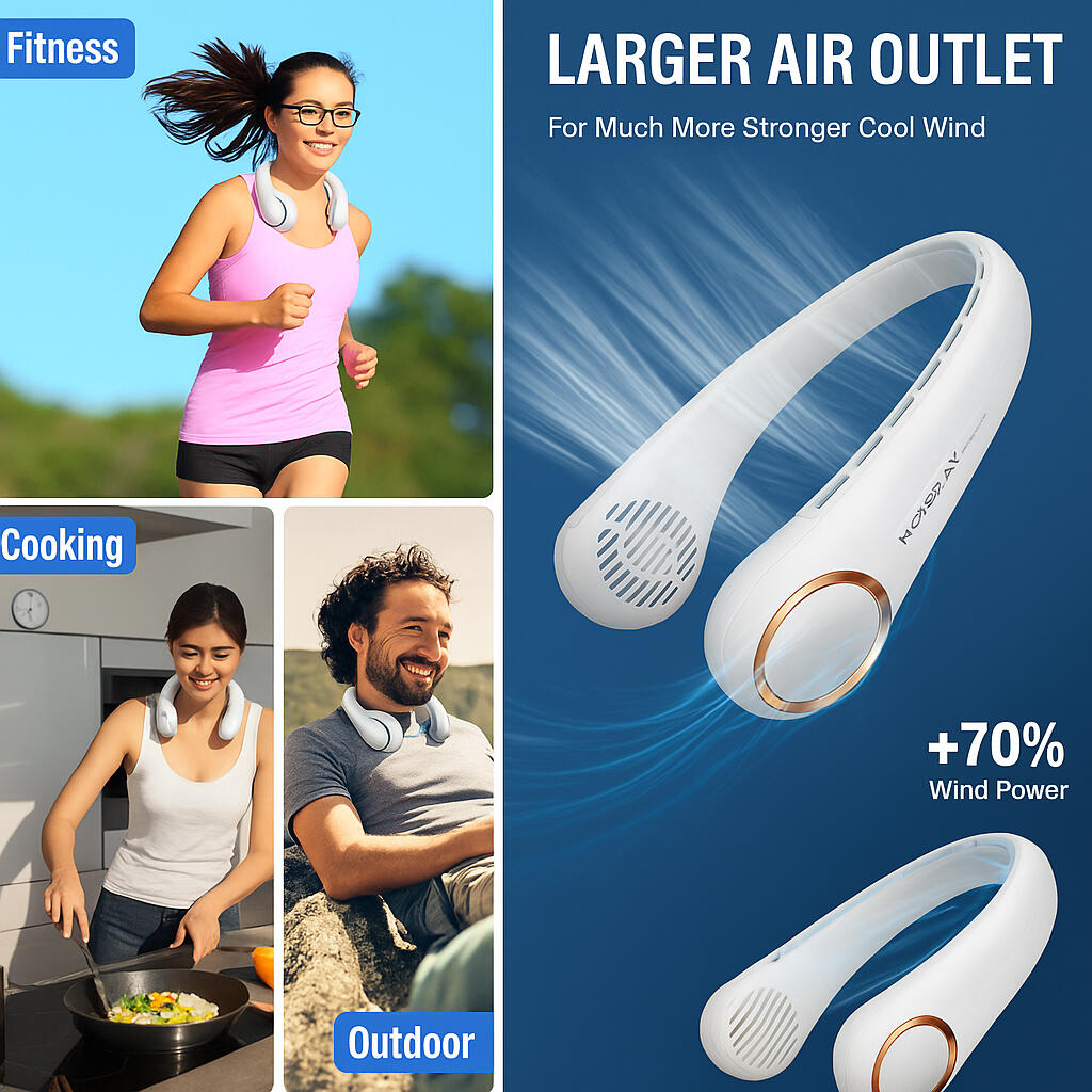 Portable Neck Fan, Hands Free Bladeless Mini Fan with 360°Cooling Airflow, 3 Speeds Adjustable, Ultra Quiet Wearable, Suitable for Indoor
